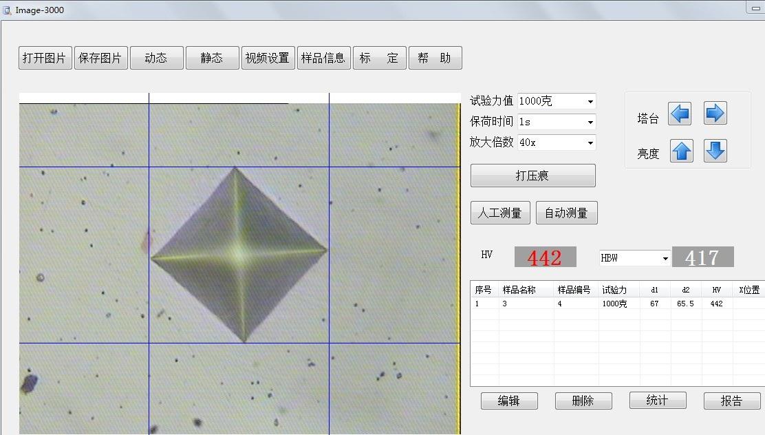 為找到正確成像位置 應注意要調節使壓痕邊緣清晰 而不是壓痕對角線或對角線交點清晰。我們需要測量的是這個四棱角錐體坑表面棱形的對角線長度。為幫助操作者掌握這一步驟,這里提出“視差判別法“ ,當用分劃板刻線或十字交點對準壓痕對角線頂尖時,人眼相對于目鏡左右移動,這時如調焦不正確,即壓痕邊緣象不完全落在分劃板上,則會發現此邊緣相對于分劃線會左右移動。這說明調焦不正確,如人眼相對目鏡的位置不一致,則一定存在測量誤差,此時應進一步調焦,直至此邊緣相對分劃線在人眼晃動時無相對位置才為正確。